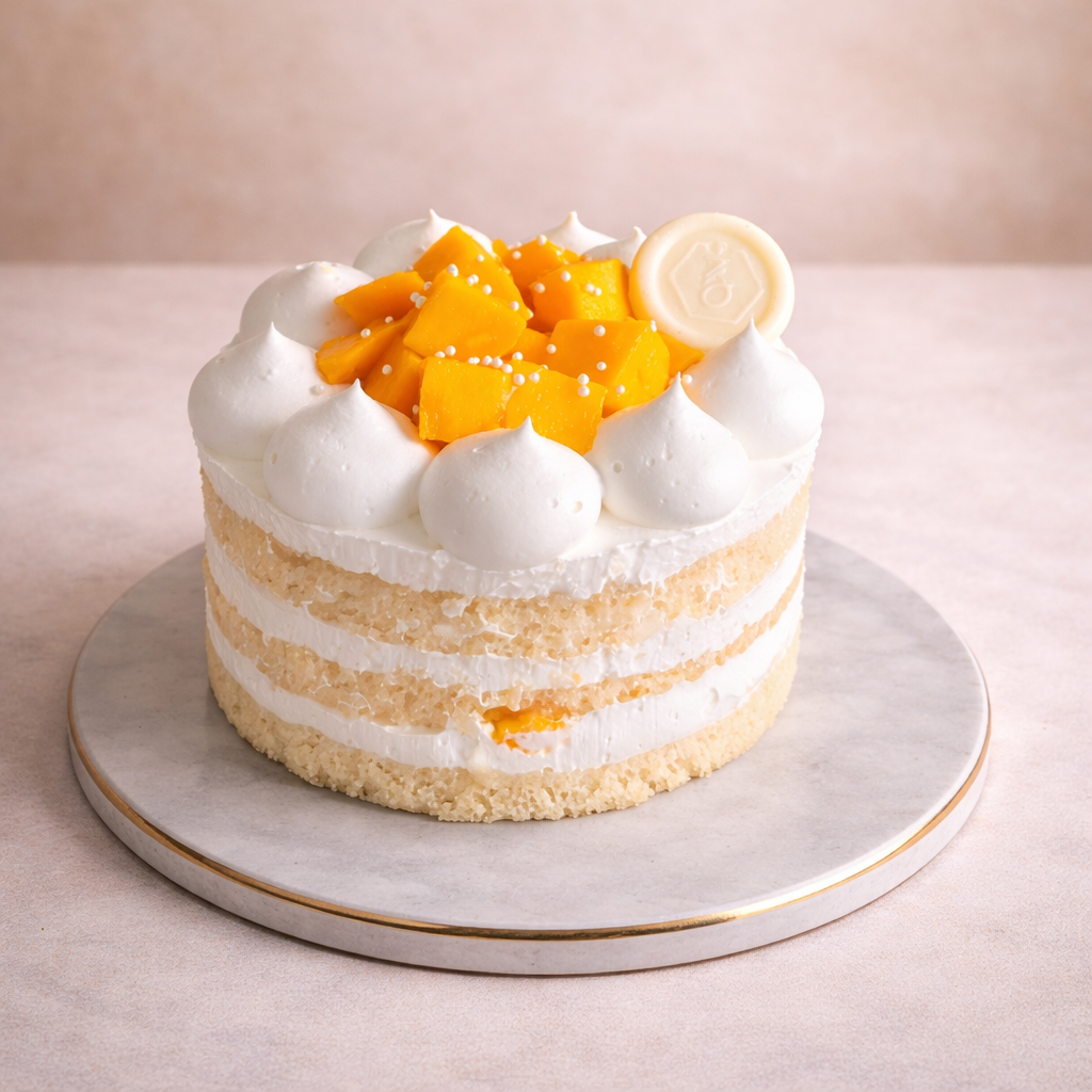 Layer of super moist and fresh vanilla sponge. Layers are layered with with fresh airy cream. Each layer contains a generous spread of diced fresh Mangoes. A complete blissful cake. Signature cake from the House of ZOROY. Completely eggless and gelatin free.